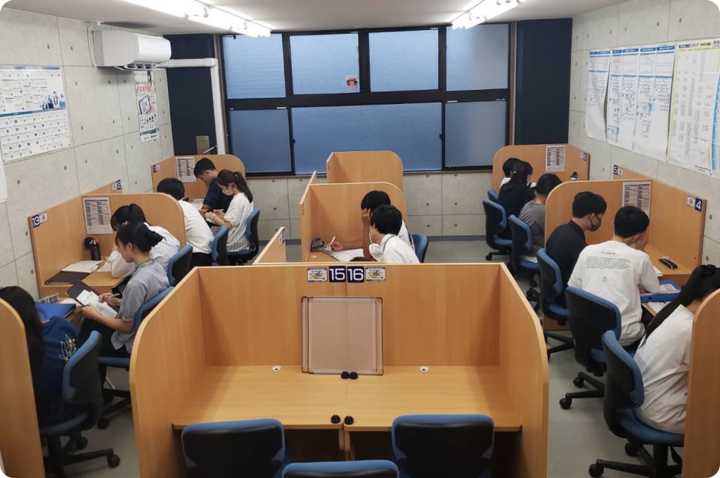 Axis国府校の学習環境(自習室の時間、教材、サポート体制)を体験いただき、今後の春期講習で学ぶことを把握していただきます。