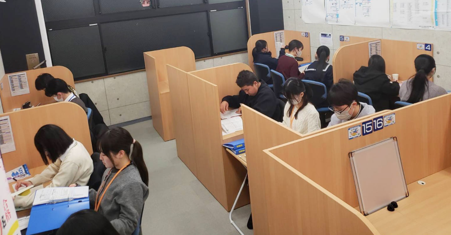 Axis国府校の学習環境(自習室の時間、教材、サポート体制)を体験いただき、今後の春期講習で学ぶことを把握していただきます。